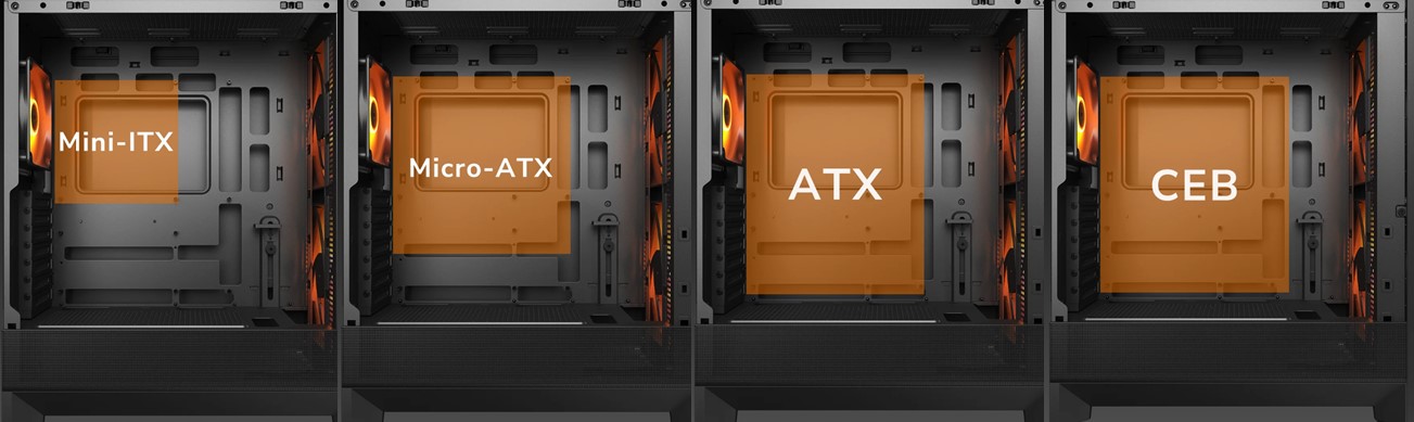 Airface 180 оптимально підходить для різних вимог до збірки, сумісний з материнськими платами зі зворотним роз'ємом, Mini-ITX, Micro-ATX, ATX і CEB.