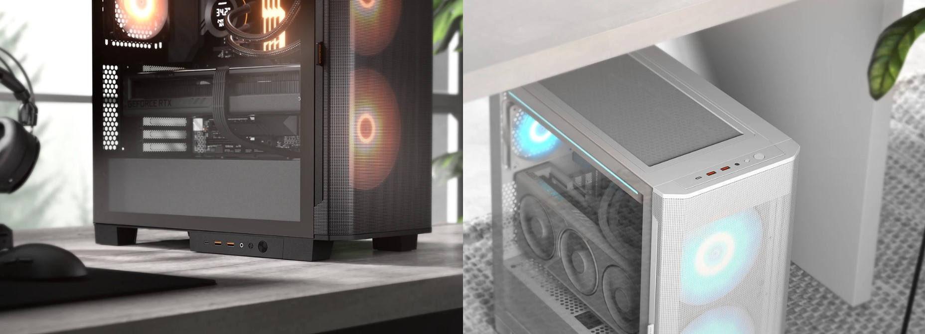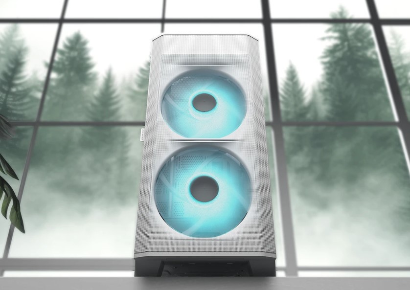 Класичний зовнішній вигляд сітчастої передньої панелі ідеально доповнюється двома 180-міліметровими вентиляторами ARGB PWM.