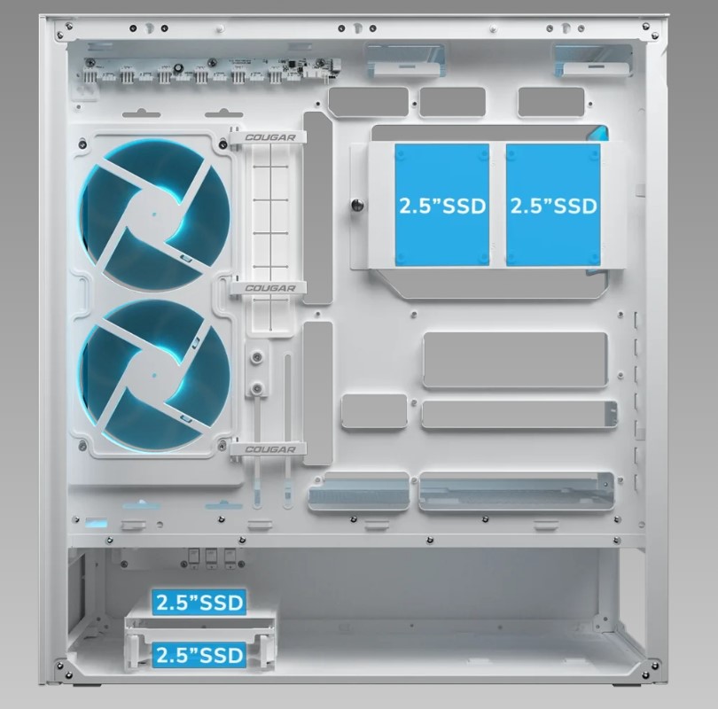 Сталева рама товщиною 1.5 мм підсилює шасі, зберігаючи структурну цілісність навіть при використанні підвісної центральної вентиляції. В результаті виходить смілива, відкрита архітектура, яка залишається жорсткою, надійною і готовою до високопродуктивних збірок.