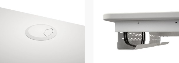 Кабельна втулка дозволяє акуратно прокладати дроти через верхню частину столу. Кабельний лоток під столом дозволяє приховати непривабливі дроти та подовжувачі.
