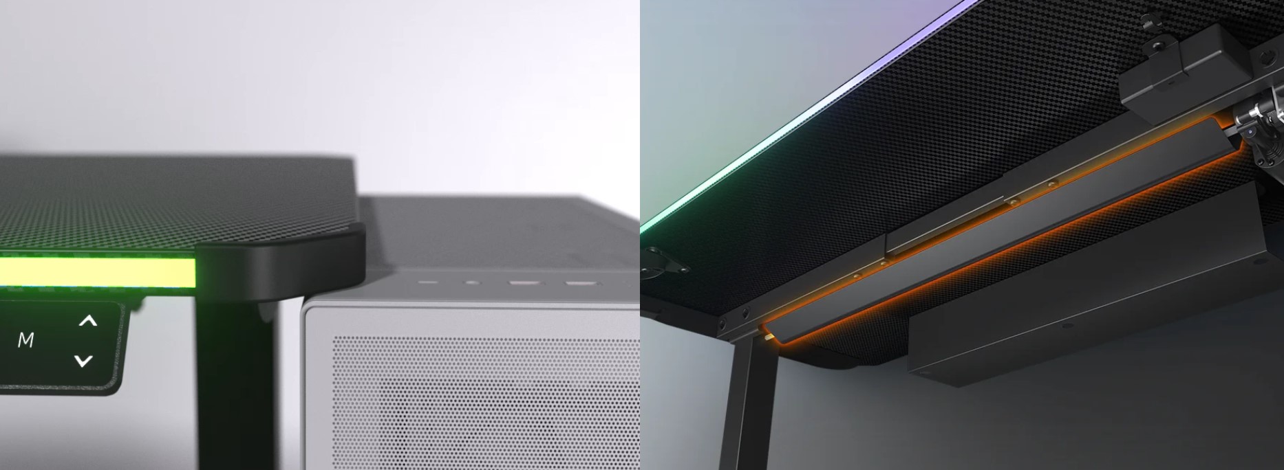 RGB-підсвічування вбудовано в сам стіл без використання додаткових модулів, що займають цінний простір на поверхні. Вибирайте з 14 різних попередньо встановлених кольорів і ефектів за допомогою зручного вбудованого контролера.