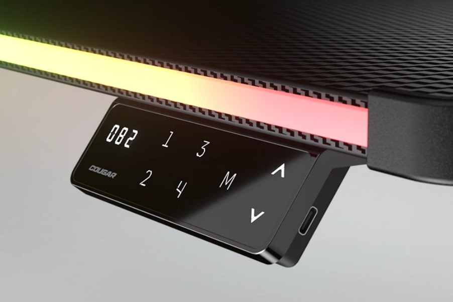 Панель управління має чотири попередньо встановлені положення для регулювання висоти і включає порт USB-C для зручного заряджання пристроїв.