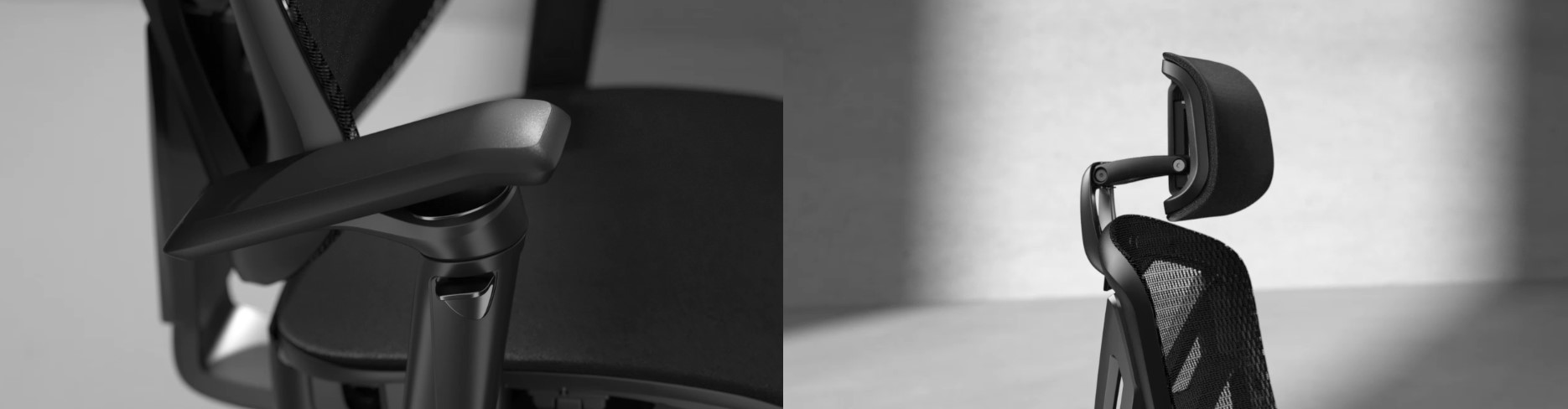 Підлокітники 3D Hyperrotation забезпечують широкий діапазон рухів, підтримуючи різні положення рук, а підголівник регулюється для індивідуального комфорту.